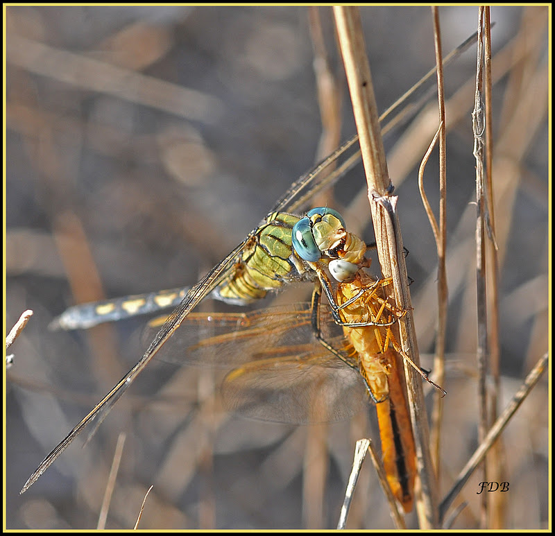 Estando efectuando una salida fotografica por el campo, me encontre con la siguiente escena que plasmo a continuación con una serie de fotos. Esto confirma lo depredadores que son las libelulas: